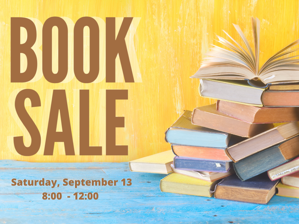 The book sale will be Saturday, September 13, starting at 8:00 and ending around 12:00.